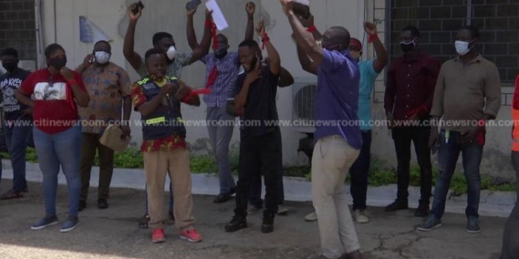 Some Freight Forwarders in Takoradi on Thursday, May 7th, 2020, picketed at the Customs Division of the Ghana Revenue Authority offices in Takoradi to demand the suspension of UNIPASS which they say has been problematic for their operations.